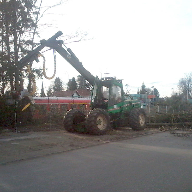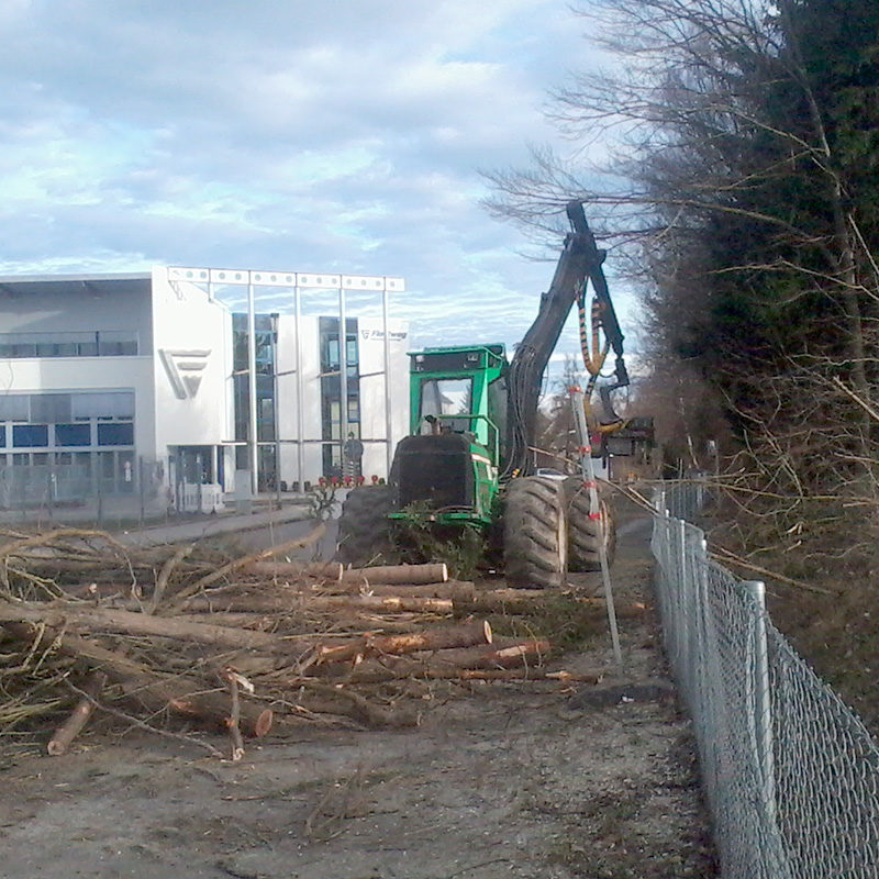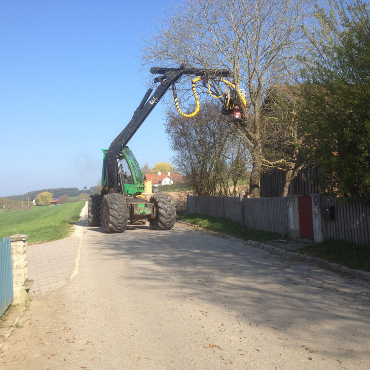 Mit dem Harvester können Bäume direkt entnommen werden, die neben ihrem Wuchsort keinen Platz haben, um sie mit einer Fällung vor Ort umzulegen. Zäune, Gebäude und umliegende Pflanzungen werden geschont.