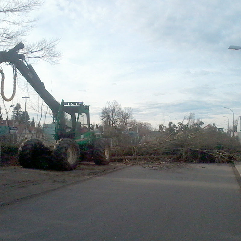 Fällung eines Baumbestandes an einem Bahndamm. Es durfte weder der Zaun, noch das Bahngleis oder das Grundstück an der gegenüberliegenden Straßenseite beschädigt werden.